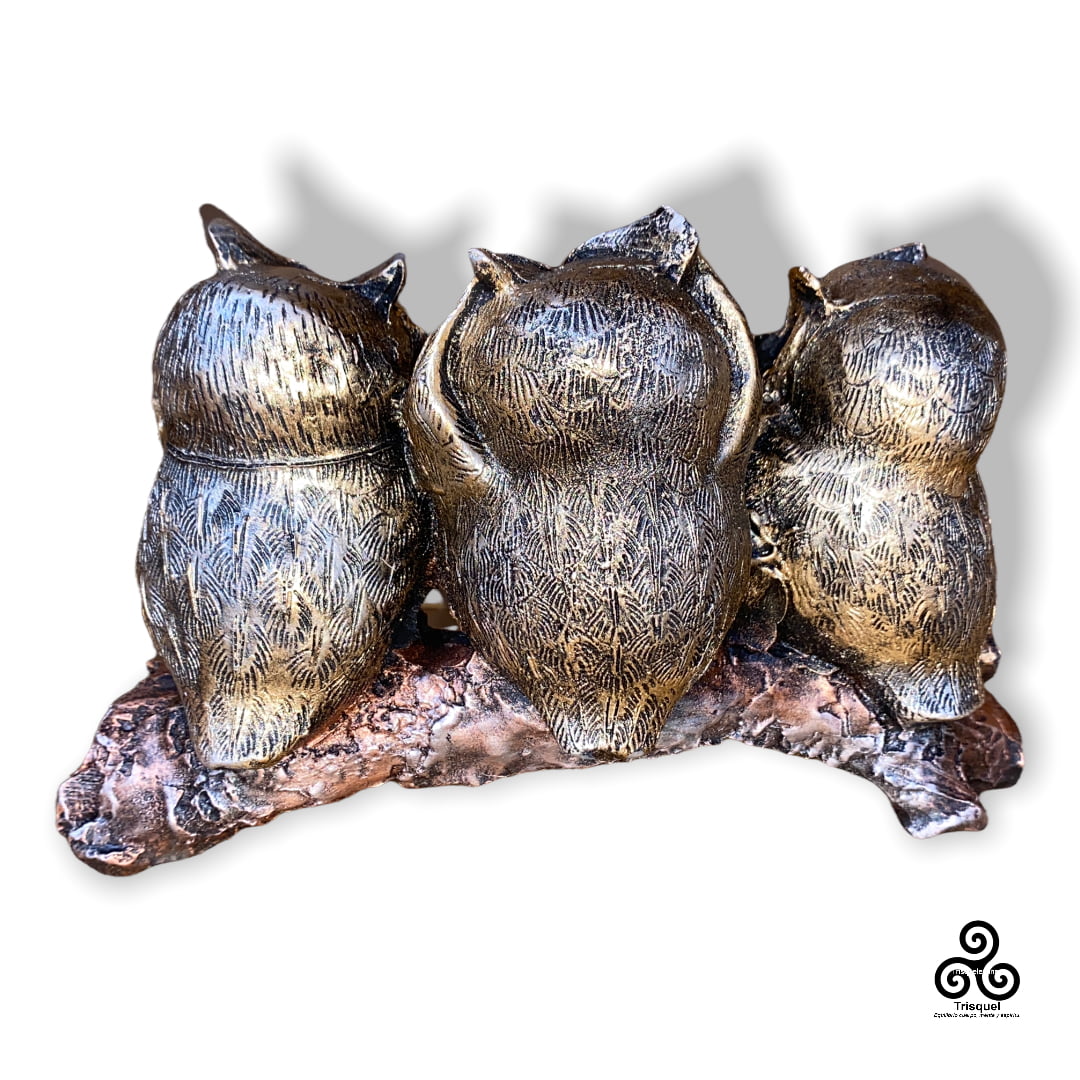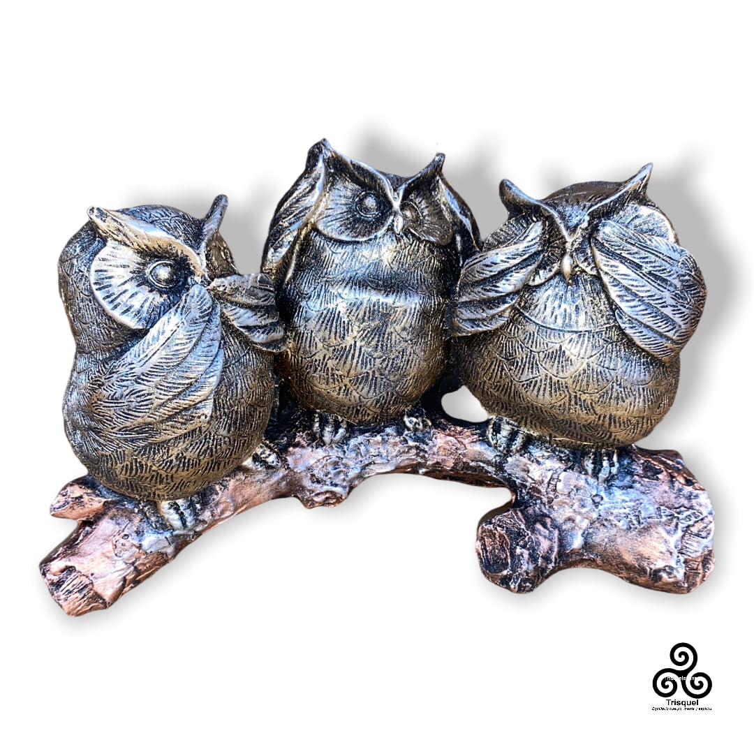 Los Tres búhos hacen alusión al ícono de Los Tres Monos Sabios. “No mirar al mal, no escuchar al mal, no hablar al, o del mal»