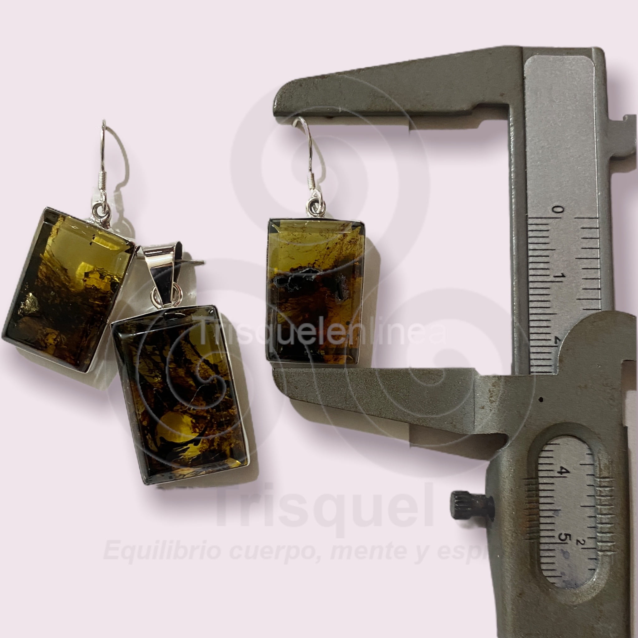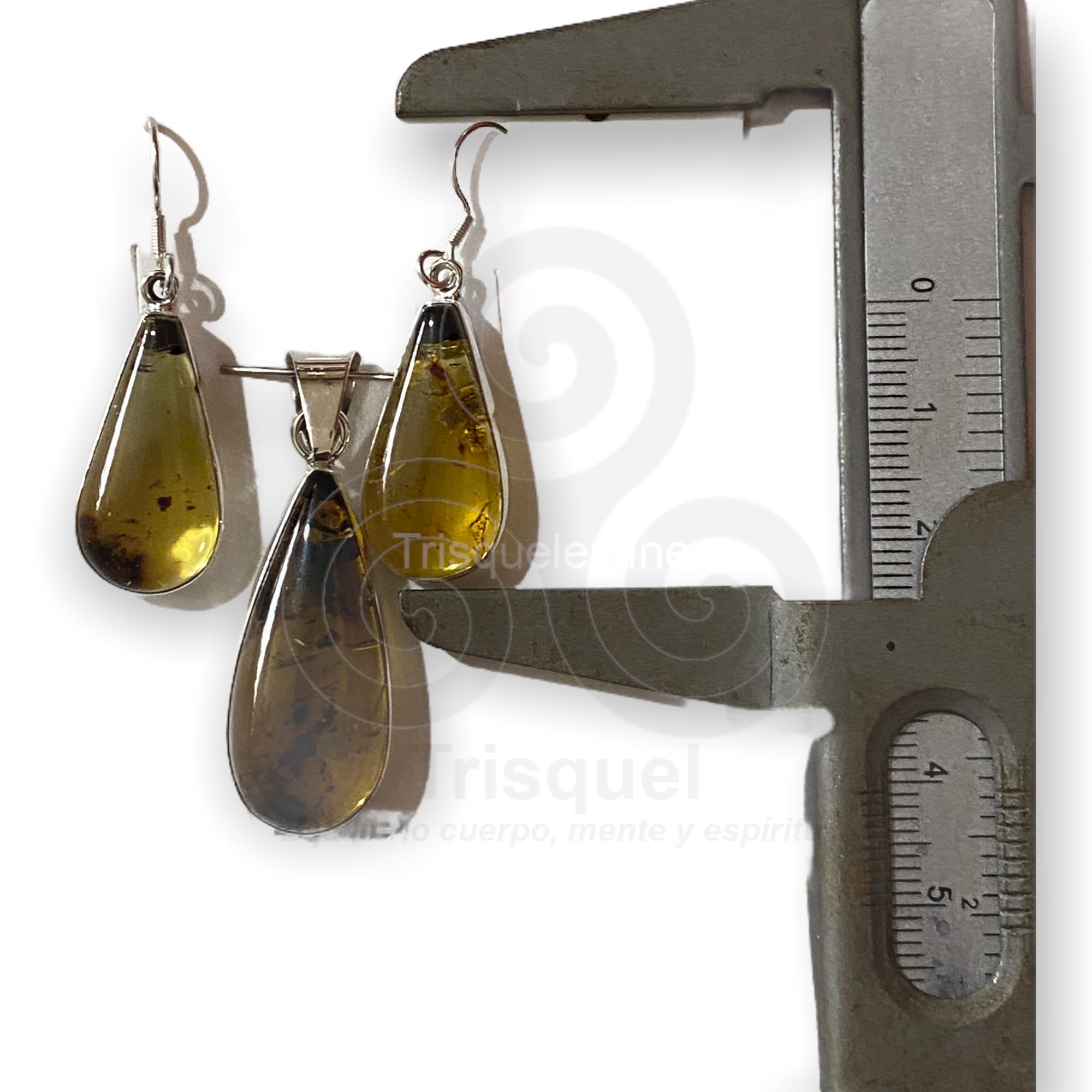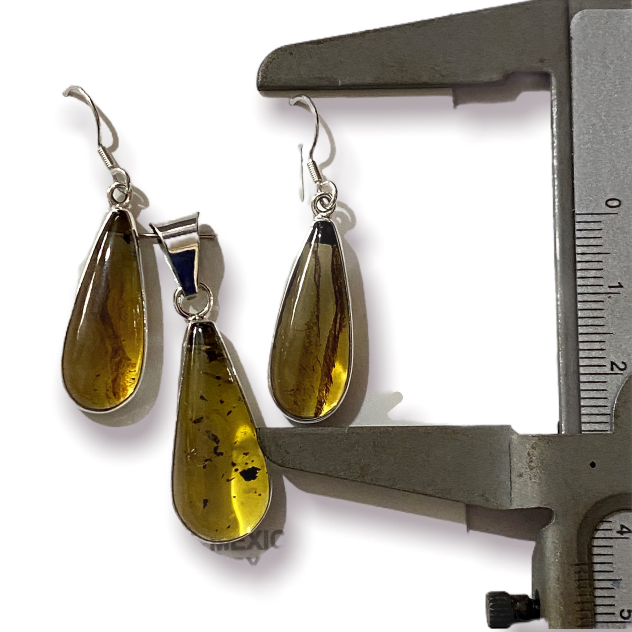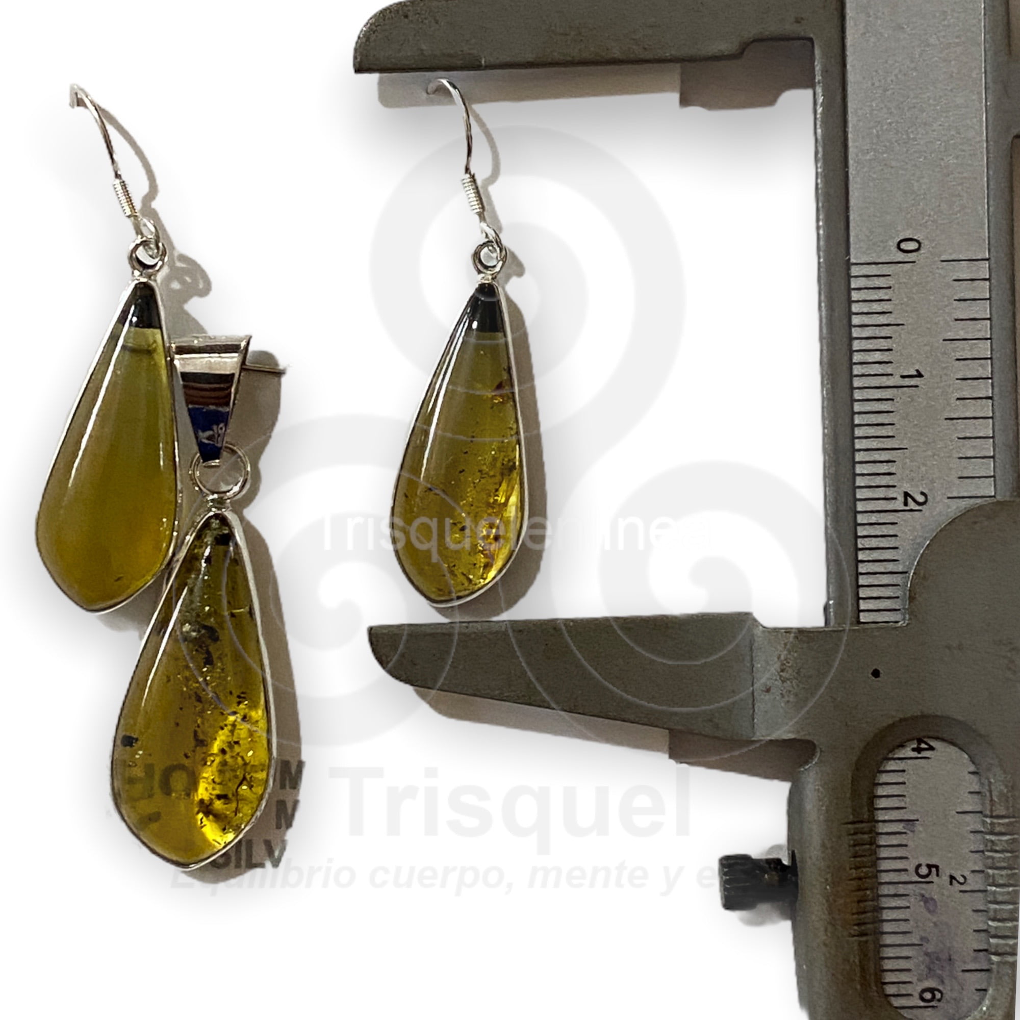 Hermosas piezas de ambar engarzadas en plata ley 925. El conjuto consta de: